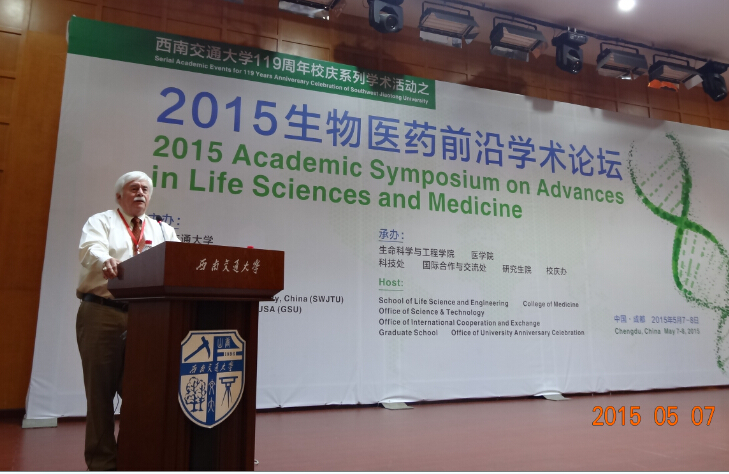 、医学院、科技处、国际合作与交流处、研究生院、校庆办共同承办的2015生物医药前沿学术论坛开幕式结束后,美国科学院院士、美国总统勋章获得者、普林斯顿大学教授Thomas J. Silhavy,以“革兰氏阴性细菌中外膜的生物合成”(Outer membrane biogenesis in Gram-negative bacteria)主题做了精彩的报告,报告中阐述了G-外膜如何被发现并总结LPS、LPPS 及OMPS在埃希氏杆菌属的装配路径等。