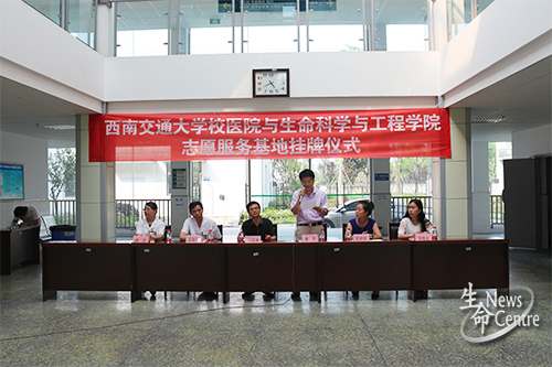 犀浦校区校医院进行志愿服务基地挂牌仪式。