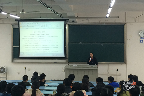 随后,李遂焰又向14级同学介绍大类专业方向选择细则,包括专业方向具体内容、专业申请时间安排以及专业方向对于今后发展的影响。她在讲说的最后表示,希望同学们慎重选择未来发展方向,能够在下一学期看到每位同学都展现出新的学习面貌、带动新的学习风气。