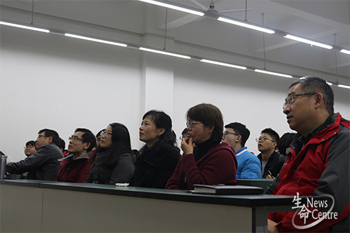 随后,由幽默的孟涛老师讲解生物科技的发展以及生物工程的专业特色、应用和前景。同时,他还以身边的例子来显示生物工程的大好前景,除此之外,还向同学们分析本专业的国际形势,对国内外的发展情况进行分析,简单明了地显示出这个专业的优势。同时他提到个人发展的问题,即要求同学们在学习中要认识自我,踏实认真,明确目标,迎接挑战。