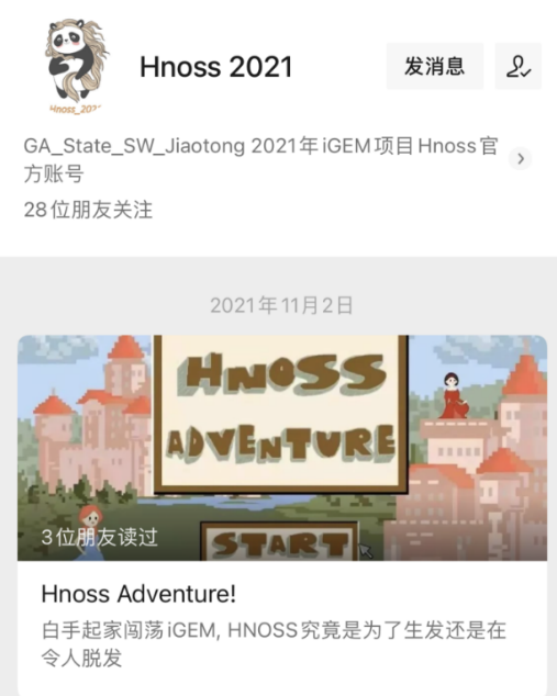 科学最终的答案都服务于生活,团队成员不仅学习新的知识,也注重合成生物学知识的分享与科普。团队和Shanghai_Tech,NPU_China建立了紧密的伙伴关系,在项目实施的多个方面互帮互助,还与Tongji_China, SJTang, SZ_SHD,Lambert_GA等队伍有着合作交流;创建了“Hnoss 2021”微信公众号,普及合成生物学知识,发布项目进展,将合成生物学以更加浅显易懂的方式推广给更多的受众。迄今为止,公众号发布了11篇文章,总浏览量超9000次。“Hnoss”团队成员在中美两国共同开展了如社区宣讲、高中宣讲、大学交流、线上宣讲会等教育交流及社会实践活动,扩大iGEM赛事的社会影响力。此外,还拍摄了中英文双语微电影上传到国内外知名视频网站Bilibili和YouTube上,扩大了项目的宣传力和影响力。