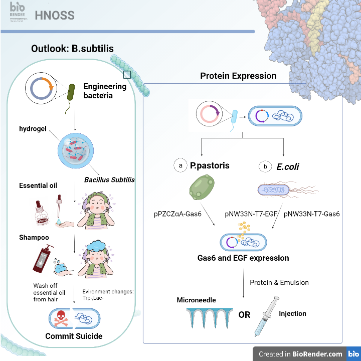 与美国乔治亚州立大学第三次联合组队参赛iGEM。与前两届iGEM有所不同,今年联队从创新性和前瞻性的角度出发选择了更加具有挑战性的一条道路——自主选题,确定“Hnoss”作为参赛题目。“Hnoss”以2021年3月发表在顶级期刊Nature上关于脱发的最新研究为主要研究背景,聚焦脱发问题,从毛发发育调控关键因子Gas6及EGF相关的调控路径入手,利用合成生物学方法异源表达毛囊细胞生长相关蛋白,同时采用新的递送方式探究蛋白靶向递送到头皮后头发的生长效应,为脱发治疗提供全新的方法与思路。