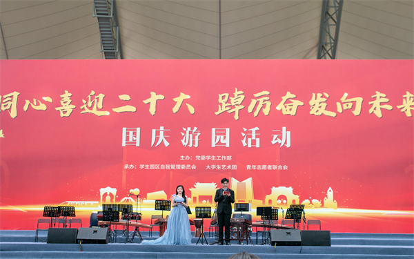 欢度国庆迎盛会。10月1日上午,学院组织参加“同心喜迎二十大 踔厉奋发向未来”国庆游园活动,两校区600余名师生欢聚一堂,共同为祖国送上生日祝福。老师和同学们在汇入红色元素的游戏活动中实现了友好互动,在促进师生情、同窗情的同时,更进一步坚定了广大师生听党话跟党走的信心,增强了为中华民族伟大复兴的中国梦奋发前行的决心。