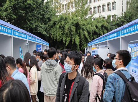 11月4日下午,九里校区大学生会堂前广场处,人声鼎沸。来自各行各业的70家知名单位汇聚于此,既有成都生物研究所、浙江先声药业、四川科伦药业、四川携光生物等知名生物医药类公司,也有宜宾市委组织部、五粮液以及电子科技大学宜宾校区、成都理工大学宜宾校区、四川轻化工大学、宜宾学院等宜宾市的组团招聘,还有西南交大设计院、中建三局、中土集团福州勘察设计院、中车眉山车辆公司、四川九洲电器、浙江轨道交通建设管理集团等优秀企业来校招聘。其中,生物医药与医疗器械专场招聘会参会企业共30家,为学院2023届本硕博毕业生提供了丰富的就业机会。