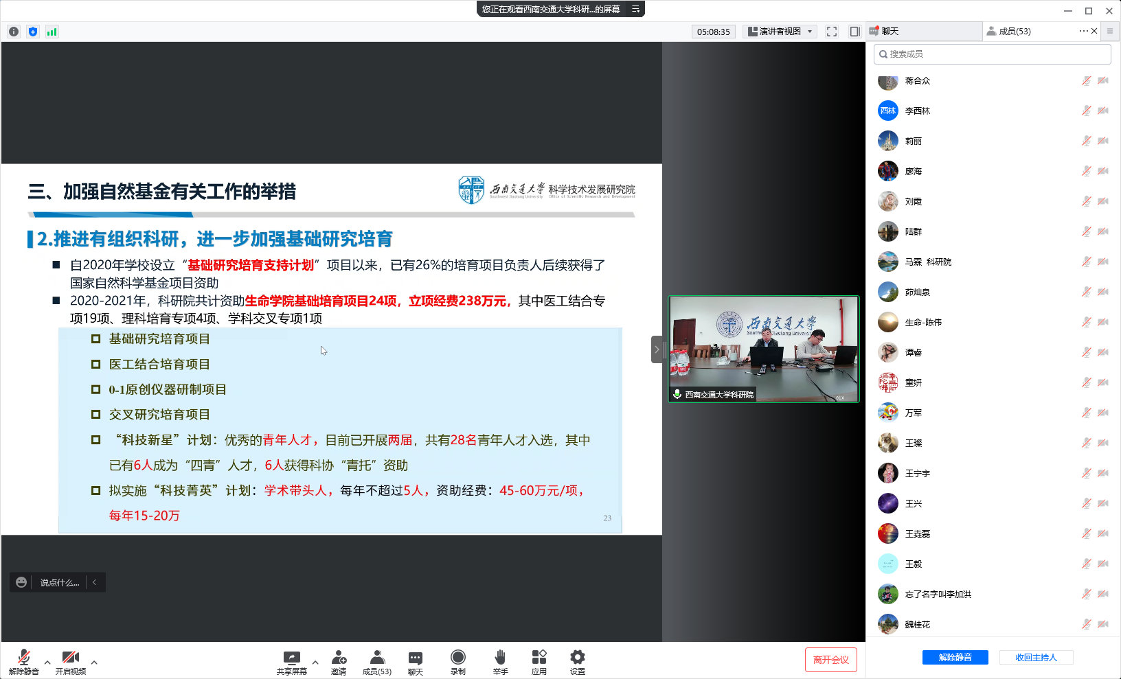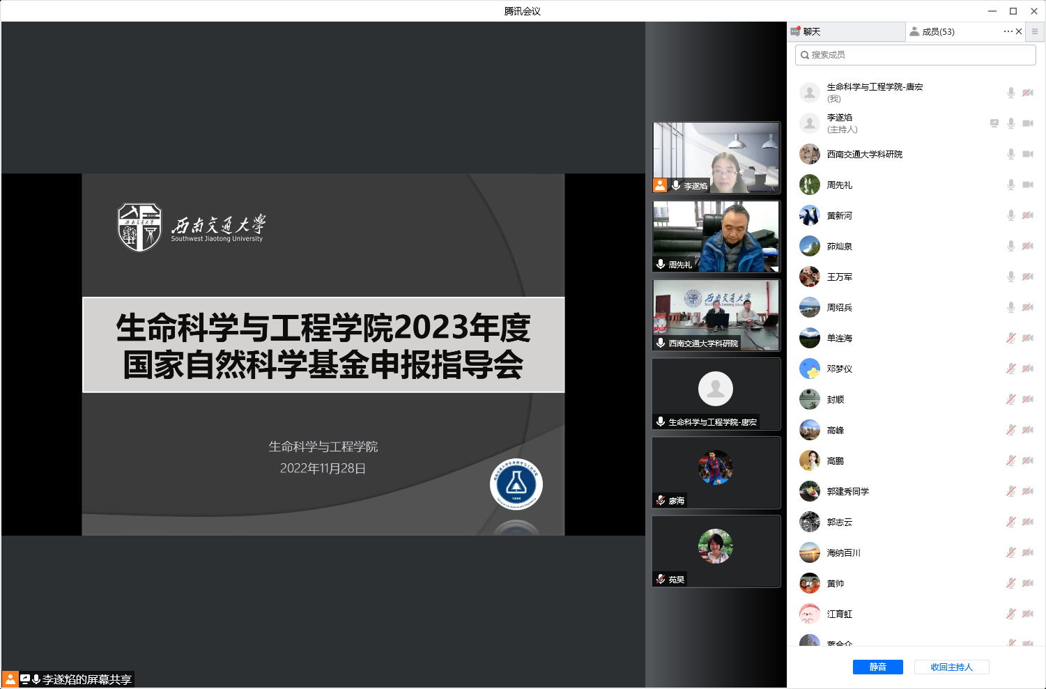 科研工作安排,结合西南交大科学技术发展研究院对国家自然科学基金申报工作的整体部署,2022年11月28日下午,通过线上形式举行了91视频