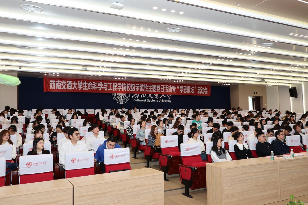 举办“学习二十大 永远跟党走 奋进新征程”校级示范性主题党日活动暨“学思讲坛”系列讲座启动会。四川省委宣讲团成员、国家社科基金重大项目首席专家、马克思主义学院林伯海教授,学院党委书记李卓慧、党委副书记朱炜、团委书记高鹏、学工组辅导员、青年讲师团成员、驻班党员、本科生党员、入党积极分子、青马工程学员以及学院各学生组织、班级、团支部等学生骨干300余人参加活动。
