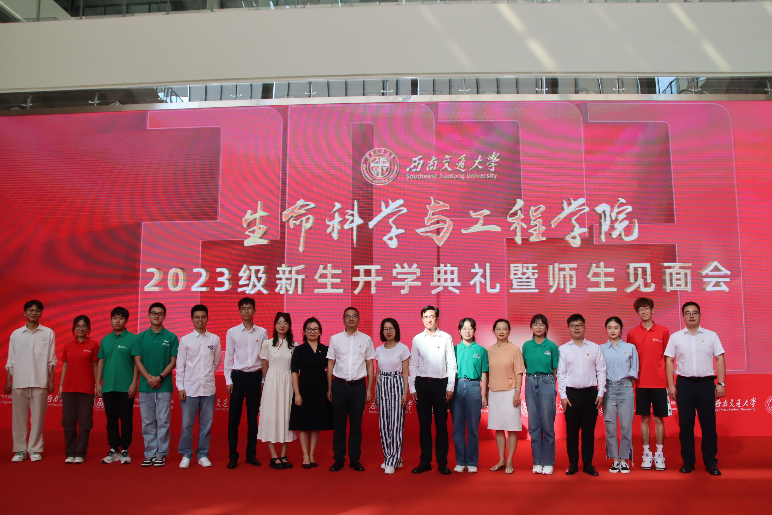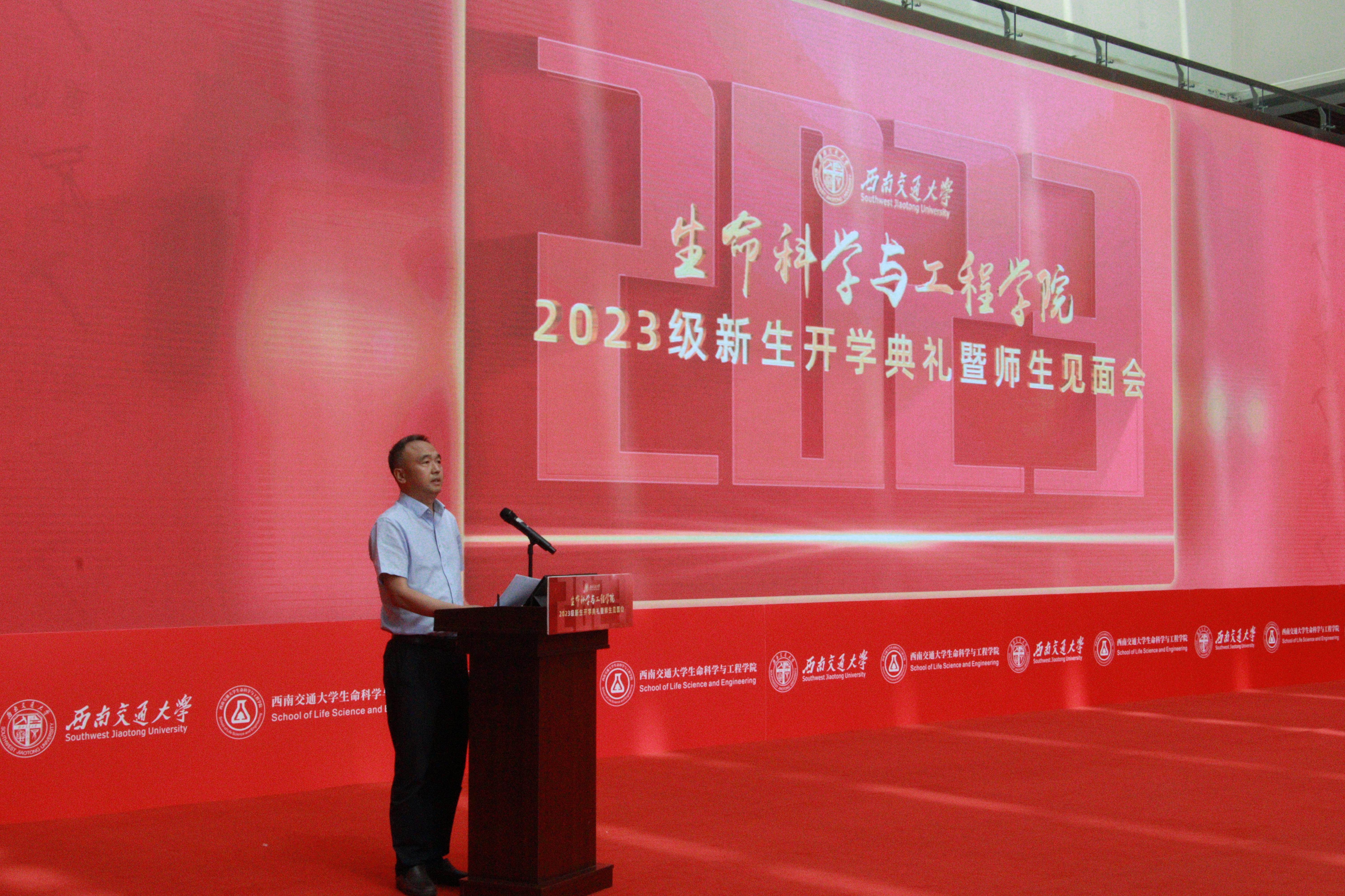 院长周先礼,学院党委书记李卓慧及学院班子成员、系主任、内设机构负责人、班导师及全体辅导员与2023级新生欢聚一堂,在犀浦校区隆重举行2023级新生开学典礼暨师生见面会。在典礼上,周先礼院长介绍了学院的历史、特色及学科发展、科学研究、人才培养情况,勉励同学们要志存高远,求实创新,修德明辨,努力成为一名优秀的交大生命人。李卓慧书记介绍了学院2023级新生辅导员、班导师、驻班党员配备情况,勉励同学们爱党爱国、勤学奋进,努力成长为有格局、有情怀、有视野、有担当的新时代西南交大生命人。2023级新生班导师、研究生导师王毅副教授作为教师代表发言,他结合自身的学习经历、教育教学体会,告诉同学们时刻警醒自己,要拒绝划水、拒绝躺平、拒绝摆烂,要通过努力让这个时代变得更美好。本科生新生代表高一鸣同学、研究生新生代表洪美莹同学在发言中表示,站在新起点、迎接新挑战、开启新征程,他们将和全体新同学一道,弘扬“竢实扬华,自强不息”的交大精神,坚守“严谨治学、严格要求”的交大传统,刻苦钻研、勇于创新、勇于探索,在这个充满无限可能和放飞梦想的新时代,创造更加美好的新未来,为健康中国建设和人类生命健康事业贡献交大生命人的力量。
