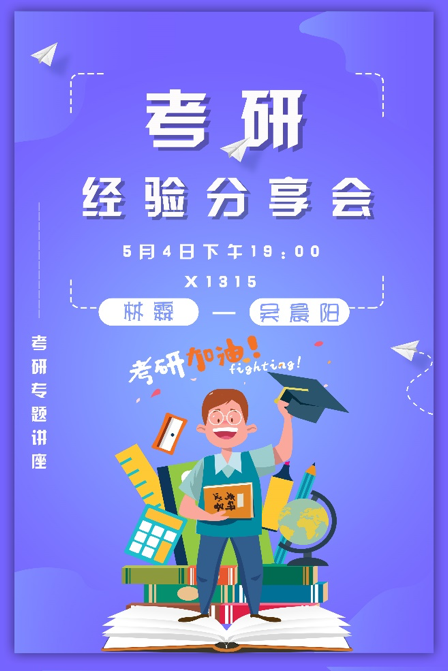 将举办“考研经验分享会”,为有考研需求的同学们提供一个平台,让同学们获悉最新的考研情况,提高学习效率,明确考研目标及复习方向,以积极乐观的心态迎接考研。现将具体事宜通知如下: