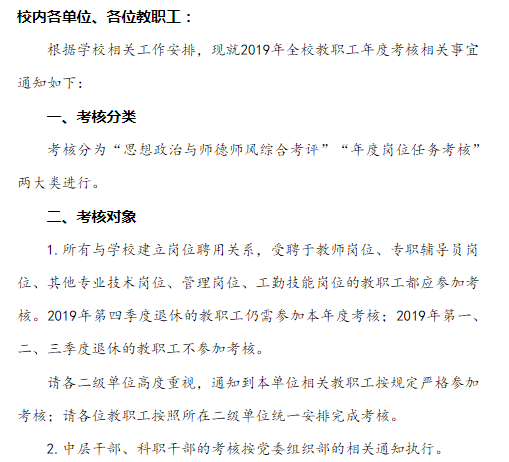 关于开展2019年度教职工考核的通知
