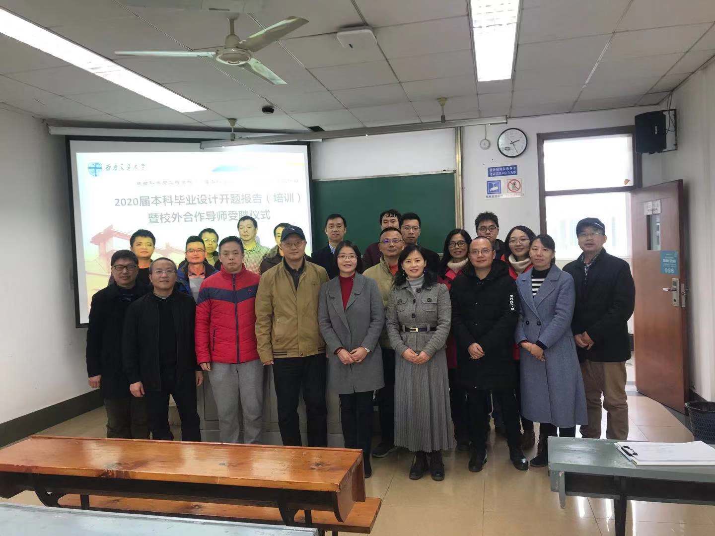 2020届本科毕业设计开题报告培训暨校外合作导师受聘仪式在九里校区4504A顺利举行。本次培训邀请了来自四川大学化学工程学院的宋航教授、兰先秋副教授、何泽超副教授、李子成副教授等专家,为2020届本科毕业设计的指导教师开展培训活动。学院副院长李遂焰、生物系主任王枢、化学化工系主任陆群等17位导师参加本次工作坊。
