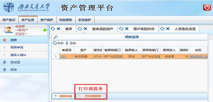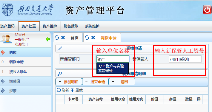 二、《固定资产管理平台》调拨操作指南(本系统目前仅支持chrome浏览器)