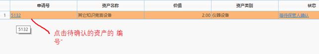 点击 “学院审核”后,点击待审核资产的”申请号”