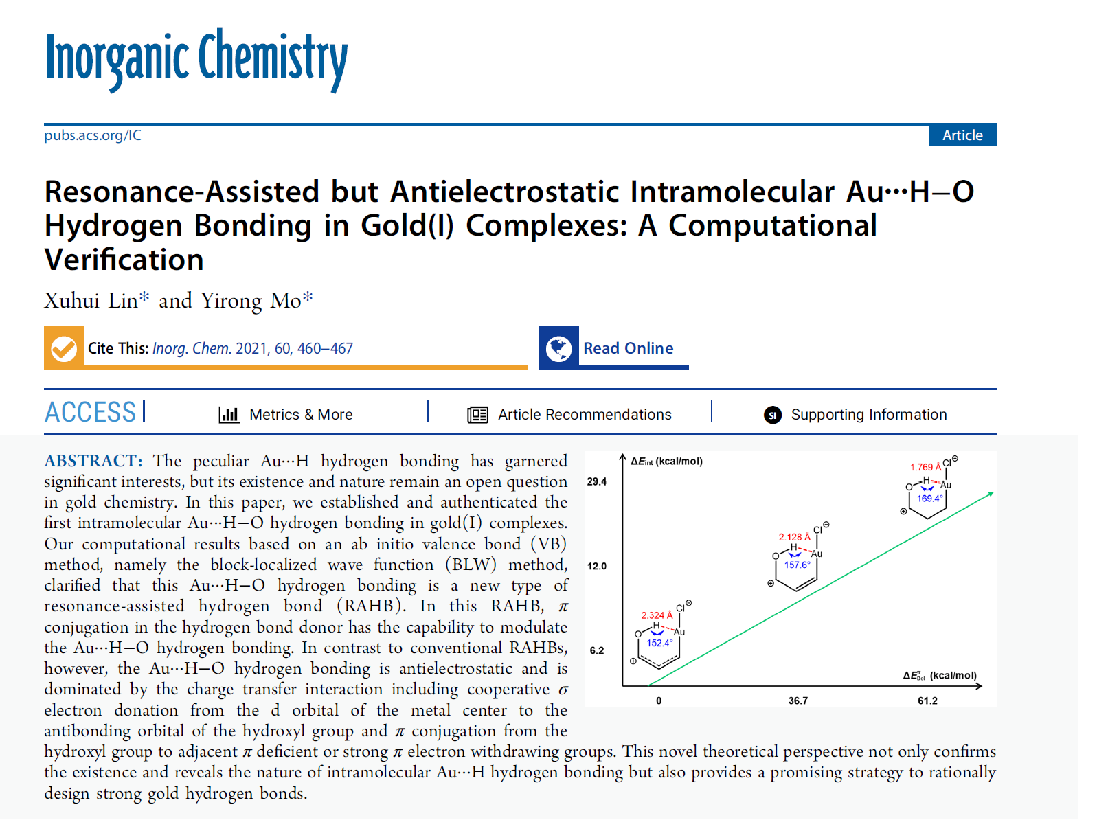 为第一单位发表了题为“Resonance-Assisted but Anti-Electrostatic Intramolecular Au∙∙∙H−O Hydrogen Bonding in Gold(I) Complexes: A Computational Verification”的研究论文。91视频