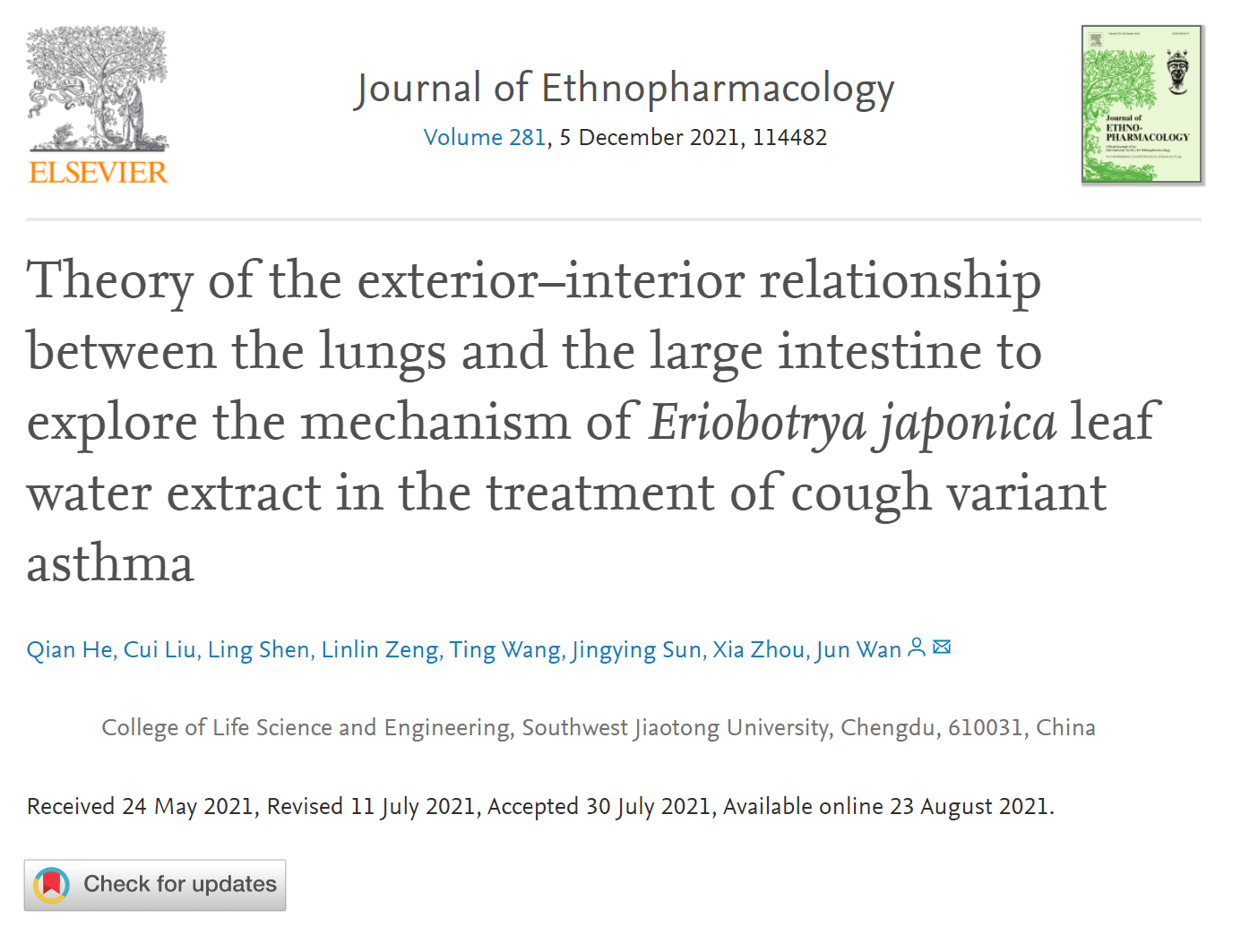 91视频 闫智勇教授课题组在中药药理学权威期刊《JOURNAL OF ETHNOPHARMACOLOGY》上发表高水平论文