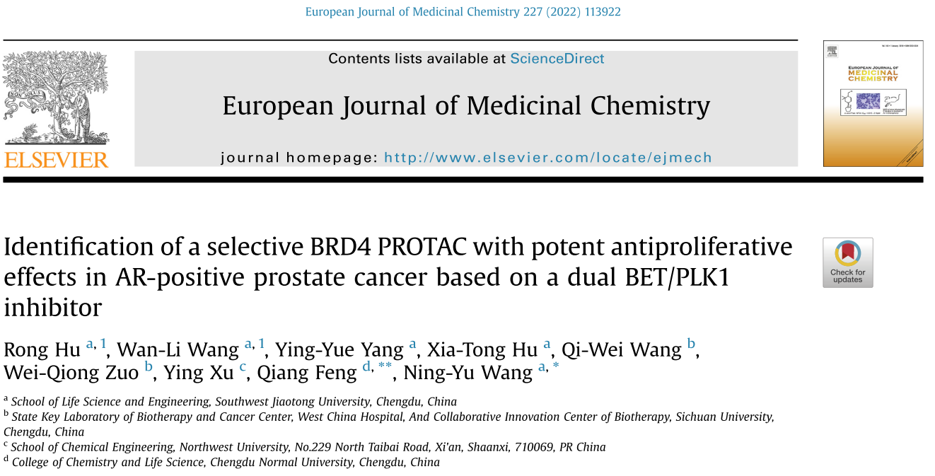 91视频 王宁宇课题组在《European Journal of Medicinal Chemistry》上发表高水平论文