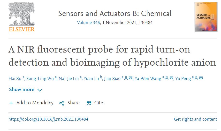 91视频 王雅雯教授课题组在《Sensors and Actuators: B. Chemical》和《Organic & Biomolecular Chemistry...