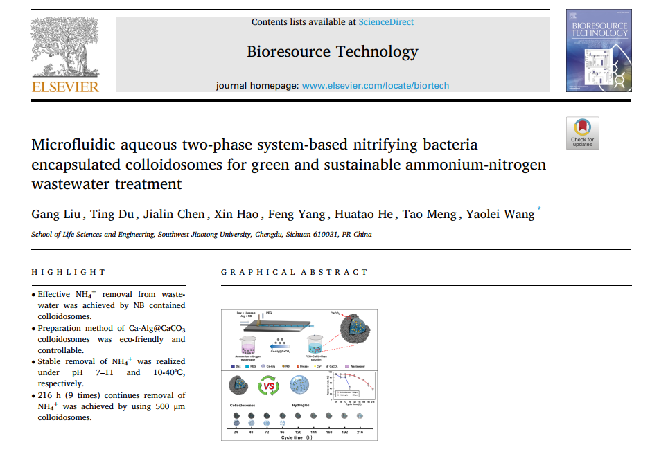 “资源与环境生物技术” 课题组在环境科学领域TOP期刊《Science of the Total Environment》上发表最新...
